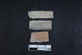 | Description / विवरण | Fragment of blades with two dorsal ridges having smooth surface. Shortest fragment has Length- 2.2 cm and Breadth - 1 cm. The remaining fragment has Length - 2.7 cm and Breadth - 1 cm. |