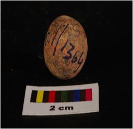 | Description / विवरण | Terracotta circular in shaped sling ball, very small in size, rough surface and surface treated with wash in red colour. |