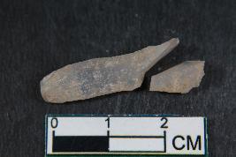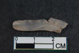 | Description / विवरण | Fragment of a blade with one dorsal ridge and bulb of percussion on the ventral side having smooth surface. Shorter fragment has Length equivalent to 1 cm |