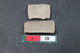 | Description / विवरण | Fragment of a Blade with one dorsal ridge having smooth surface. Shorter fragment along with two dorsal ridge has Length equivalent 1.4 cm. |