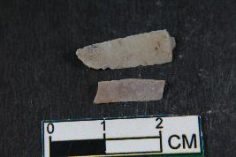 | Description / विवरण | Fragment of blades with one dorsal ridge having smooth surface. Shorter fragment has Length equivalent to 1.1 cm. |