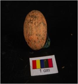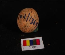 | Description / विवरण | Terracotta circular in shaped sling ball, smooth surface, uneven surface and surface treated with wash in red colour. |