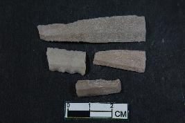 | Description / विवरण | Fragment of blades with two dorsal ridges having smooth surface. Shortest fragment has Length -1.5 cm and Width - 1.1 cm. |