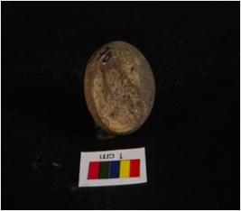| Description / विवरण | Terracotta circular in shaped sling ball with smooth surface circular in section and grey in colour. |
