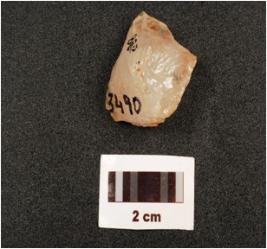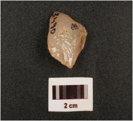 | Description / विवरण | Fragment of quartz core with three blade scars on smooth surface, |