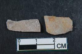 | Description / विवरण | Fragment of a blade having one dorsal ridge. It has smooth surface. Shorter fragment has length equivalent to 1.5 cm, along with two dorsal ridges. |