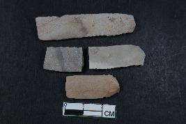 | Description / विवरण | Fragment of a blades having two dorsal ridges. It has smooth surface. Shortest fragment has length - 2.1 cm and Width -0.9 cm. |