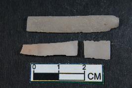 | Description / विवरण | Fragment of a blades having two dorsal ridges. It has smooth surface. Shortest fragment has Length -1 cm and Width - 0.7 cm. The remaining fragment has Length - 1.7 cm and Breadth - 0.5 cm. |