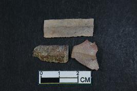 | Description / विवरण | Fragment of blades having one dorsal ridge. It has smooth surface. Shortest fragment has length - 1.3 cm and Width - 1.1 cm. The remaining fragment has Length - 1.4 cm and Breadth - 0.8 cm. |