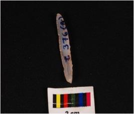 | Description / विवरण | Parallel side microlith blade with use wear marks on cutting edges and prominent mid-ridge on dorsal, prominent bulb on proximal end, it has triangular section. |