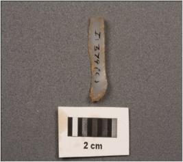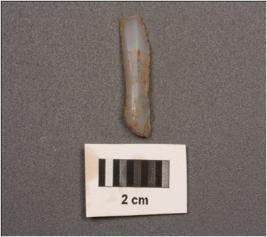 | Description / विवरण | Parallel sided chalcedony blade, two ridge on dorsal side, use wear on edge, diffused bulb on proximal end. |