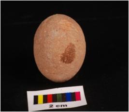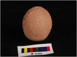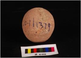 | Description / विवरण | Terracotta sling ball, round in shape, smooth surface and surface given wash treatment in dull red colour. |