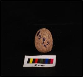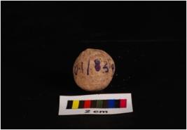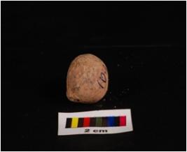 | Description / विवरण | Small size terracotta sling ball, round in shape, smooth surface and wash treatment given in red colour. |