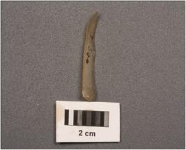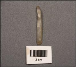 | Description / विवरण | Microlithic blade with improminent mid ridge on dorsal and diffused bulb on proximal end. Triangular section at distal end. |