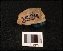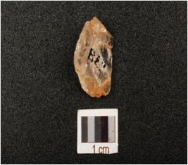 | Description / विवरण | Fragment of a blade with broken along proximal end and intact distal end flake scars on surface, use wear marks on working edge, |