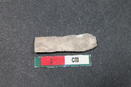| Description / विवरण | Fragment of a blade with two dorsal ridge and positive bulb of percussion on ventral side having smooth surface. |