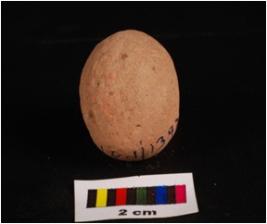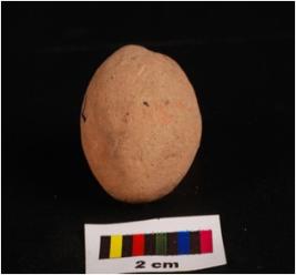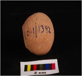 | Description / विवरण | Terracotta sling ball, round in shape, rough surface and surface given wash treatment in red colour. |