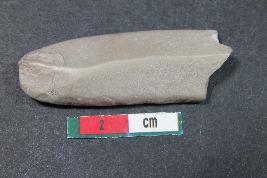 | Description / विवरण | Fragment of a blade with one dorsal ridge and a bulb of percussion on ventral side having smooth surface. |
