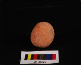 | Description / विवरण | Small size terracotta sling ball, round in shape, smooth surface and wash treatment given in red colour. |
