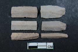 | Description / विवरण | Fragments of blades having one dorsal ridge. And smooth surface. Three of the blade has two dorsal ridges. |