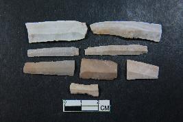 | Description / विवरण | Fragments of blades with two dorsal ridges and smooth surface. Four of the blades have two dorsal ridges. |