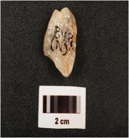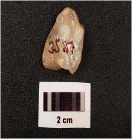| Description / विवरण | Fragment of a blunted blade, flake scars on surface, broken along proximal end, intact distal end, use wear marks along the working edge, |