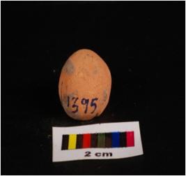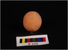 | Description / विवरण | Small size terracotta sling ball, round in shape, smooth surface and wash treatment given in red colour. |