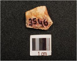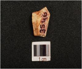 | Description / विवरण | A flake made on chert stone, flake scars on surface, diffused bulb on ventral side, use wear marks on working edge, |