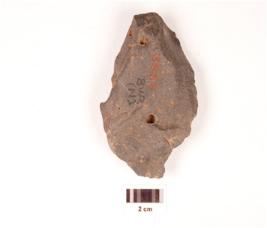| Description / विवरण | A side scrapper made on basalt with flake scars and cortex on the dorsal surface, it has prepared platform, and negative bulb on the ventral side, irregular along the working edge. |