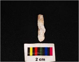 | Description / विवरण | Perallel sided blade, made up of chalcedony stone, mid ridge on dorsal ventral smooth with prominent bulb and use wear marks at edge. |