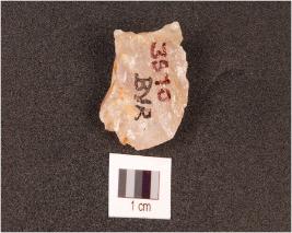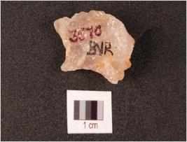 | Description / विवरण | A flake made on quartz with flake scars on the surface and slightly concaved end, it has smooth surface. |