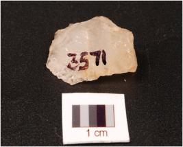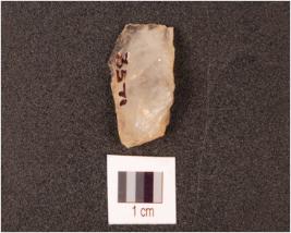| Description / विवरण | A flake made on quartz with flake scars on the surface and irregular edges, it has smooth surface. |