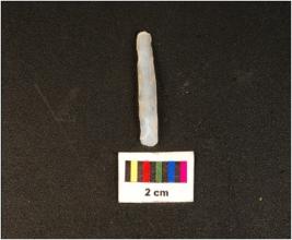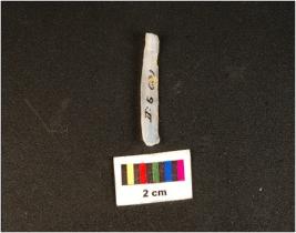 | Description / विवरण | Parallel sided microlithic blade with use wear marks on cutting edges and wavy mid ridge on dorsal. Triangular in section and diffused bulb proximal end. |