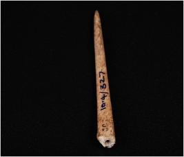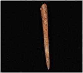 | Description / विवरण | A bone point with pointed end other and is broken, circular cross section, light brown and smooth surface. |