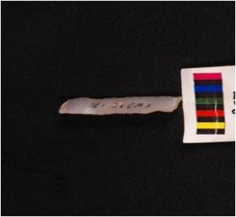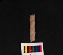 | Description / विवरण | Parallel sided microlith blade with wavy mid-ridge on dorsal and use wear marks on cutting edge. Triangular in section. |