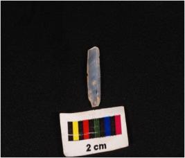 | Description / विवरण | Fragment of parallel sided microlith blade with double ridges on dorsal and diffused bulb on proximal end. Trapezoid in section. |