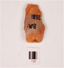 | Description / विवरण | A side scrapper made on chert with prepared platform and positive bulb on the ventral surface, it has flake scars on the dorsal side, irregular working edges, broken at distal end. |