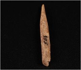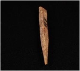 | Description / विवरण | A bone point with pointed end light brown, uneven surface, one and is broken and square cross section. |
