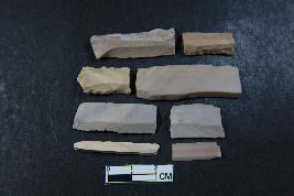 | Description / विवरण | Fragments of blades having two dorsal ridges with bulb of percussion in two of them.They have smooth surface. |