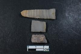 | Description / विवरण | Fragments of blades having one dorsal ridge in one of them and two dorsal ridges in two of them.They have smooth surface. |