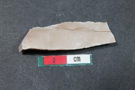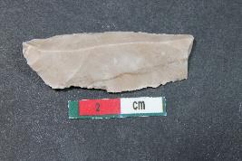 | Description / विवरण | Fragment of a Blade with one dorsal ridge having smooth surface. It also has bulb of percussion on the ventral side. |
