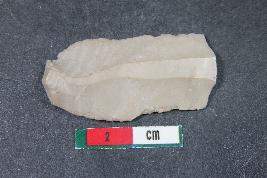 | Description / विवरण | Fragment of a blade with positive bulb of purcussion and two dorsal ridges having smooth surface. |
