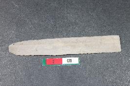 | Description / विवरण | Fragment of a blade with positive bulb of purcussion and two dorsal ridges having smooth surface. |