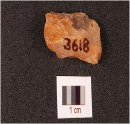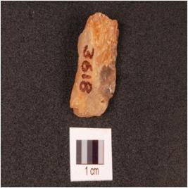 | Description / विवरण | A chert flake with irregular surface, it has prepared platform and diffused bulb. |