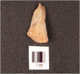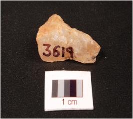 | Description / विवरण | A triangular shaped quartz flake with irregular surface on the dorsal side while the ventral surface is smooth, slightly damaged. |