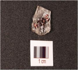 | Description / विवरण | Fragment of a blade made on quartz crystal with smooth surface, it has use ware marks along the cutting edges, partly broken. |