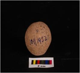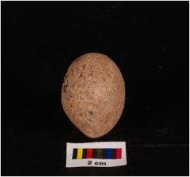 | Description / विवरण | Terracotta sling ball, round in shape, smooth surface and surface treated with a wash in chocolate colour. |