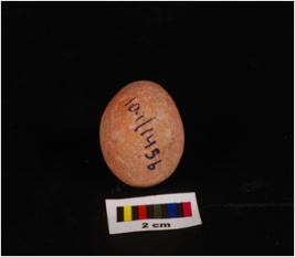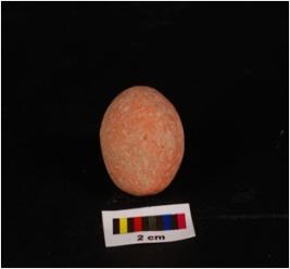 | Description / विवरण | Terracotta sling ball, round in shape, smooth surface and surface treated with a wash in red colour. |