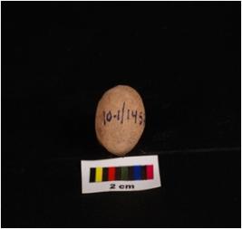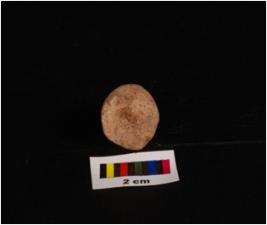 | Description / विवरण | Fragment of terracotta tiny sling ball, round in shape and surface treated with a wash in dull red colour. |