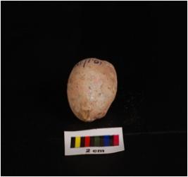 | Description / विवरण | Terracotta sling ball, round in shape and surface treated with wash in red colour. |